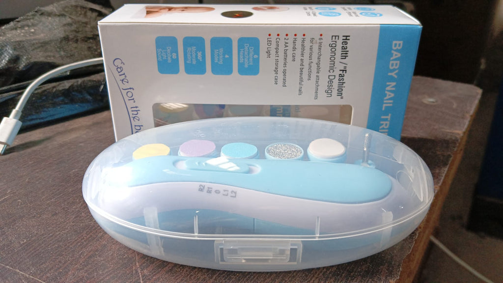 • How To Use : (1) Insert 2 X AA Batteries (2) Choose Grinding Head According To Your Baby Age (3) Attach The Grinding Head To The Top Of The Unit. To Switch Heads, Simply Pull The Current One Off And Replace 3) Hold Your Baby's Finger / Toes And Trim The Nail. (Battery not included)